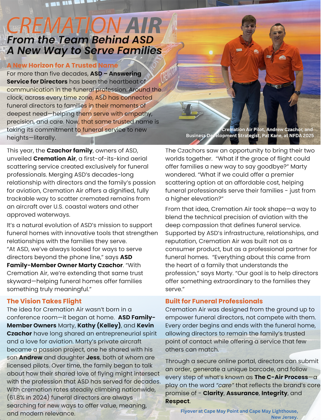 Launching Cremation Air has been more than a business endeavor – it has been a new start and a calling.